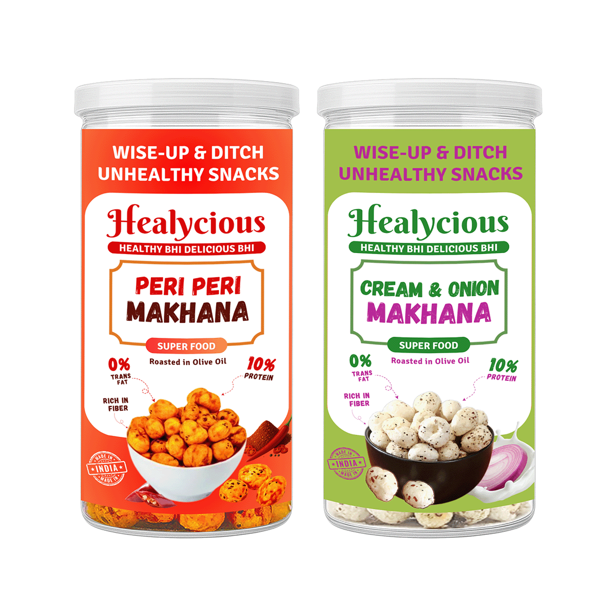 This combo pack offers the best of both worlds – the fiery, tangy flavour of Peri Peri and the creamy, savoury taste of Cream and Onion. Crafted from premium roasted makhana, these snacks are seasoned to perfection, ensuring a satisfying crunch with every bite. Free from artificial additives and preservatives, they provide a wholesome snacking experience that's both delicious and nutritious.